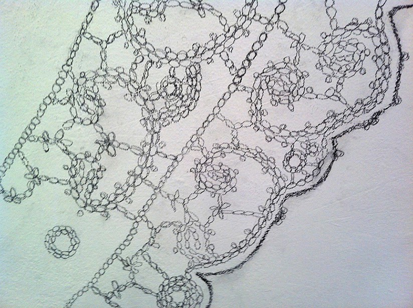 Drawn in chalk, stitch by stitch, from the center out, this giant and colorful crocheted doily will transform the pavement of downtown Greensboro. Every one hundred stitches will be visualized with a different color of chalk. The completed drawing and meditative performance will make public and visible the number of stitches in the doily, a reference to the gendered labor that often becomes invisible when looking at a completed piece of handwork, piece of lace or other handmade product largely produced by women both locally and globally.
