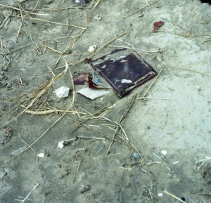 Signs of a Struggle, large scale photographs by Susan Harbage Page of Chapel Hill North Carolina now at Galeria 409. “Page has travelled the Rio Grande Valley on foot, by bicycle and canoe, documenting and collecting the objects dropped by the “mojados” or illegal aliens who swim the river in search of economic opportunity. Inner tubes, clothes and personal items dropped by the aliens or discarded by the “migra” provide the viewer with a rare insight into the ongoing struggle down here on La Frontera.”