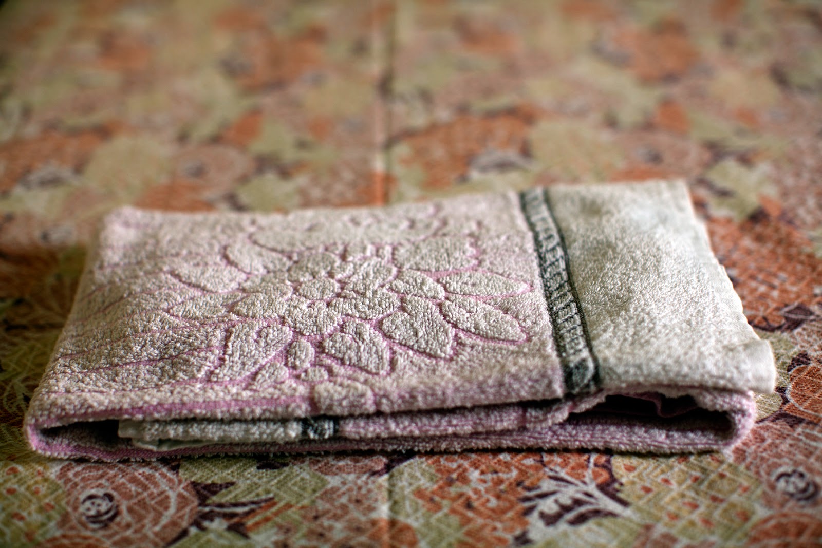 The bath towels are always folded and placed at the foot of beds made for religious pilgrims passing through on their way to Assisi. They become color studies of sorts when they become bigger than life in the prints. They show the signs of long use, wear and care—as they are neatly folded time after time.