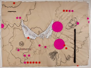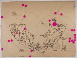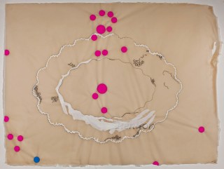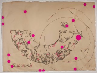 The Succumb series was produced during the summer of 2014 in Spello, and Foligno, Italy. I spent time in Italy listening intently to the handmade production of bobbin lace and mechanical reproduction of textiles in Sansepolcro, Anghiari, and Bastardo, Italy. I think of these drawings in addition to their relationship to textiles as musical scores based on the idea that noise and random sounds are music, and there is no silence.