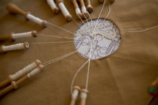 This work addresses gendered labor and the difficult questions raised by textile traditions, including lacemaking, embroidery and textile manufacturing at the turn of the century. This ongoing project provokes a dialogue about authorship and women’s labor through the production of large-scale drawings, paintings, and video based on the production of handmade lace and mechanical textile production. These works reposition the handmade objects of anonymous women in relation to the human body, social status, economics and mechanical reproduction through changes in scale, context, medium and design. I have also begun to compare and reinterpret in these works the physical cardboard patterns which are used in the production of handmade bobbin lace and textile machines of the early 1900’s.