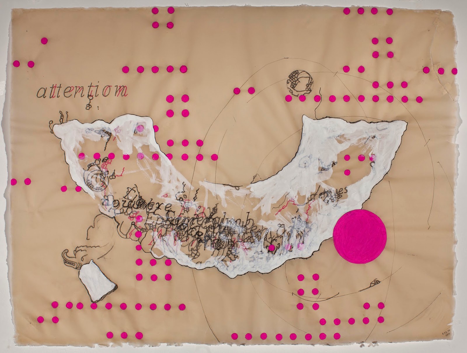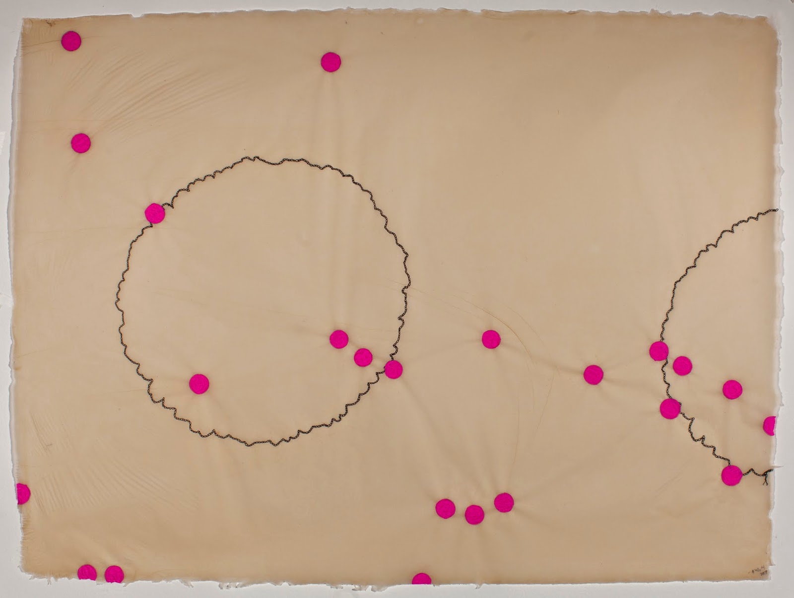 The Succumb series was produced during the summer of 2014 in Spello, and Foligno, Italy. I spent time in Italy listening intently to the handmade production of bobbin lace and mechanical reproduction of textiles in Sansepolcro, Anghiari, and Bastardo, Italy. I think of these drawings in addition to their relationship to textiles as musical scores based on the idea that noise and random sounds are music, and there is no silence.
