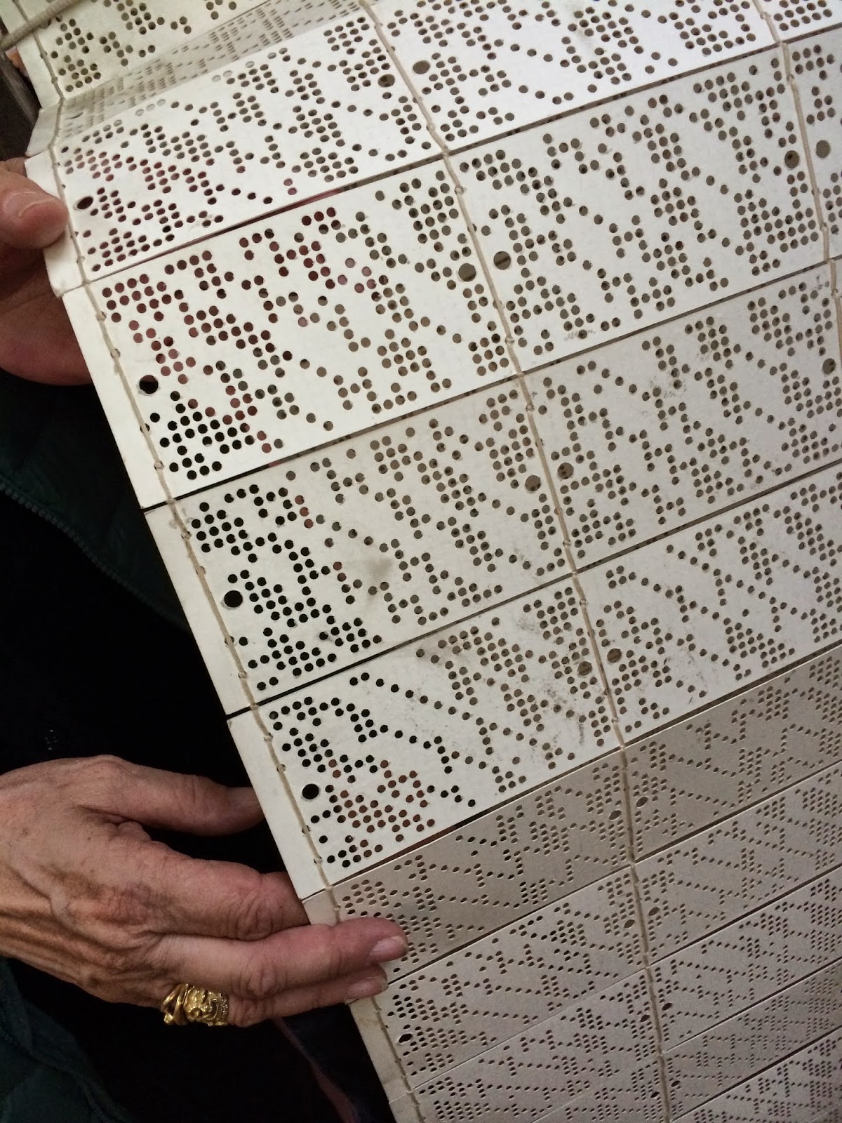 This work addresses gendered labor and the difficult questions raised by textile traditions, including lacemaking, embroidery and textile manufacturing at the turn of the century. This ongoing project provokes a dialogue about authorship and women’s labor through the production of large-scale drawings, paintings, and video based on the production of handmade lace and mechanical textile production. These works reposition the handmade objects of anonymous women in relation to the human body, social status, economics and mechanical reproduction through changes in scale, context, medium and design. I have also begun to compare and reinterpret in these works the physical cardboard patterns which are used in the production of handmade bobbin lace and textile machines of the early 1900’s.