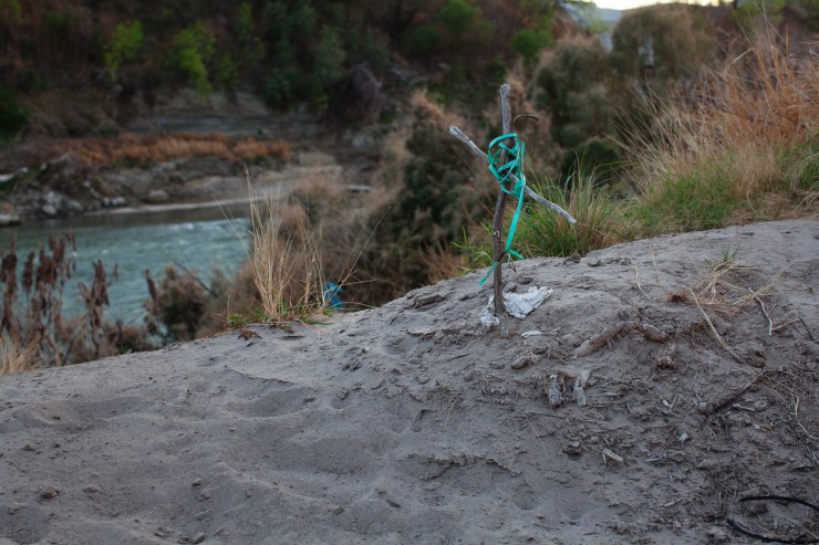 But unfortunately, geopolitics can make that most natural border crossing extremely dangerous, particularly for women. A bra can remind us how treacherous the crossing can be. Bras found hanging from trees, the artist notes, are supposedly left by coyotes to mark that a woman had been raped there, sadly a very common occurrence. According to a 2014 Fusion Investigation, 80% of Central American girls and women crossing Mexico en route to the United States are raped. In fact, the threat of rape is so prevalent that many women migrants receive preventative contraceptive injections before embarking on their journey. Women are not only extremely likely to experience sexual assault, they are also more likely than men to die during their migratory journeys, due in part to sexism on the part of coyotes, who are quick to abandon women and children when they can’t keep up. Pregnant women are even more at risk.