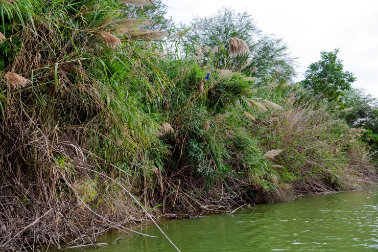 When I walk the border I invite friends from the area to walk, bike, or canoe with me. I give them a border tour of sorts, showing them the objects and the well-worn paths leading away from the riverbanks to nearby hiding spots and roads. After our pilgrimages, they often comment that their understanding of the border has shifted. What they thought was trash they now see as the remnants of people’s lives, representing hope, flight, panic, and fear. Once they see it, they will always see it. In Blue Circle Intervention, instead of picking up the objects, I left them in the landscape and drew a protective blue chalk line around them, making them visible to passersby.