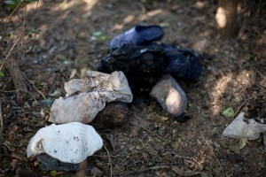 Belongings (blue shoes, white shirts, jeans, black plastic bag), near Brownsville, Texas, 2014 Like Loading...